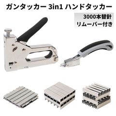 ガンタッカー 3in1 ハンドタッカー 強力 3000本替針(コ型 U型 T型) リムーバー付き ホチキス ケーブルタッカー[送料無料(一部地域を除く)]