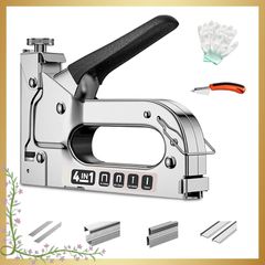 【迅速発送】ガンタッカー ハンドタッカー 強力ハンドタッカー&ホチキス ケーブルタッカー ハンドルロック機能 4in1 替針 4000本付き リムーバー付き 日本語取扱説明書付き (黒) 0