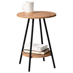 Color:ブラウン 萩原(Hagihara) サイドテーブル 丸型 机 ナイトテーブル ソファサイドテーブル 耐水 軽量 約3kg 木目調 インダストリアル 幅40×奥行40×高さ54 ブラウン LST-4660BR