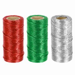 uxcell 3ロール 1.5mm メタリック ストリング 16層 装飾用 メタリック ベーカーズ ツイン コード ロープ ギフト ラッピング DIY クラフト デコレーション レッド/緑/シルバー トーン 合計 164ヤード