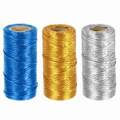 uxcell 3ロール 1.5mm メタリック糸 16本撚り 装飾用 メタリック ベーカーズ ツイン コード ロープ ギフト包装 DIYクラフト デコレーション用 金トーン/シルバートーン/ブルー 合計164ヤード