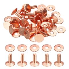 uxcell 20セット 銅リベットとバーワッシャー 9x3.3x10mm ポリッシュ仕上げ ソリッドレザーリベットファスナー スタッド ポスト レザーDIYクラフト ベルト 財布 カラー用 銅トーン