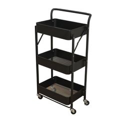 【人気商品】エイアイテック(AITECH) AIS 折りたたみトローリーワゴン 3段 幅45.5cm 奥行30.5cm 高さ89cm ブラック XOW-4589BK BK