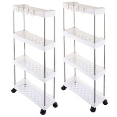 【新着商品】隙間収納 おしゃれ キッチン収納カート 耐荷重21kg スリム 多機能 小物 収納ワゴン 食品 (幅35×奥行13×高さ85cm) 調味料 4段 収納 キャスター付き 組立簡単 キッチンワゴン 仕切板付き 2個セット 4つのフック付き OMIQIY