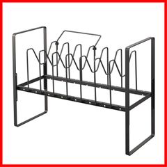 山崎実業(Yamazaki) シンク下 高さ調整 鍋蓋 & フライパン収納ラック 2段 ブラック 約W52×D26×H38~41cm(持ち手置き含む) タワー tower フライパンラック 7本仕切りパーツ付き 手持ち置き付き 5594