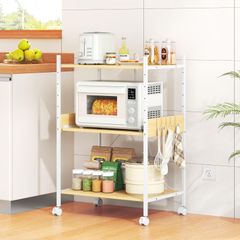 特価 コンセント・Sフック付き キャスター・アジャスター付き 移動式と固定式2機能 高さ5段調節可能 サイドパネル付き 総耐荷重112kg キッチン棚 スライド棚 幅60奥行き44高さ91.5cm 大型レンジ対応 キッチン収納 オーペンラック レンジ台 おしゃ