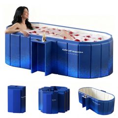 新品 折りたたみ浴槽 ポータブルバスタブ ポータブル浴槽 折り畳み浴槽 折り畳み風呂 簡易バスタブ 露天風呂 キッズ 子供 大人用 キャンプ 家庭用 組立不要 保温 コンパクト 収納便利 持運び便利 耐久性 簡易風呂 浴槽 (ブルー 1.2m)
