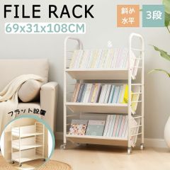 移動式 ブックシェルフ スチールラック 本棚 3段 多機能 フック付き キッチンラック コンパクト 幅69cm 省スペース キッチン 書斎 リビング オフィス 収納ラック 雑貨棚 おしゃれ 資料整理 書類棚 隙間収納 絵本漫画 雑誌 学校デスク 子供部屋