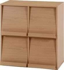 不二貿易(Fujiboeki) ディスプレイラック 本棚 幅80×奥行46.5×高さ85cm ナチュラル 4マス フラップ扉 サイドボード マガジンラック 86033/