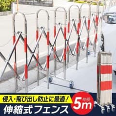 伸縮フェンス 5m ステンレス製 キャスター付 アコーディオン 門扉 2744