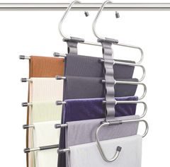【即日発送】スラックス用 5段 シングルパンツ スラックスハンガー 跡がつかない ステンレス デニム適用 DKPlus ロングスカート用ハンガー 2本セット 省スペース ズボンハンガー