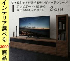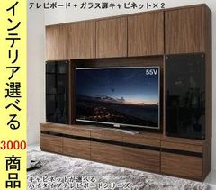 テレビ台 ハイタイプ+キャビネット 230×45×180cm 壁面用 引き出し収納タイプ ガラス扉2台キャビネット付き ウォルナットブラウン色 YC8500045808