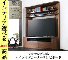 テレビ台 79×39×73.8cm コーナー用 ガラス扉タイプ キャスター付き マレーシア製 ミドルサイズ ウォールナットブラウン色 YC840500217
