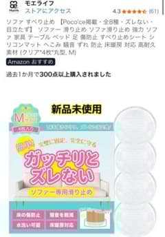 新品未使用 家具滑り止め シリコンマット 丸型 クリア 4個入り