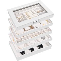 Color:ホワイト ProCase ジュエス 5層 ジュエリー収納 ジュエリートレイ アクセサリートレイ 宝石箱 オーガナイザー 分割と取り外し 小物入れ 着脱式の仕切り付き ?ホワイト