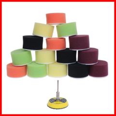 16個入 ポリッシャー バフ パッドセット フラットサンディングスポンジ 3mmシャンク付 フックとループ バッキングプレート ドレメルカーワックス Hook & Loop 研磨パッド 電気ドリル用 洗車用