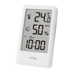 温度計 アラーム付 湿度計 時計 ミニ 小型 室内 デジタル 見やすい 熱中症対策 卓上 ウイルス対策 壁掛け 温湿度計 暑さ対策 sology(ソロジー) ホワイト