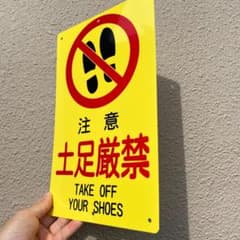 1枚入り注意土足厳禁看板日本製屋外用315×200mm黄色樹脂板耐候性標識