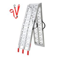 新品 Ruedamann バイク スロープ 長さ170cm 耐荷重220kg 折り畳み式 ラダーレール スチール製 ラダーレール バイク 自転車 芝刈り機 ATV四輪バギー用 トレーラーへ積み込む 取っ手とタイダウンベルト付き 1本