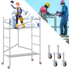 足場 高所作業台 500kg 足場台 足場板 作業用踏台 作業台 折りたたみ 移動足場 ステップ 踏台 作業 折りたたみ足場 高所 移動 式 可搬式作業台 足場用 作業台折/脚立 洗車用 簡単な組み立 ブレーキの安定性 シルバー 195X140X70cm