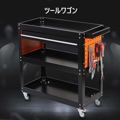 大好評☆ツールワゴン 工具カート 工具台車 作業台 工具棚 ツールカート 3ティアシェルフヘビーデューティガレージワークショップDIY工具収納ホイールカートトロリー キ