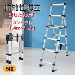 はしご 伸縮脚立 1.4m×1.7m 持ち手つき コンパクト 折りたたみ アルミ製 作業台 足場 踏み台 DIY 高所 作業 家庭 掃除 修理 生活用品 エアコン掃除 アルミはしご 万能はしご ny187