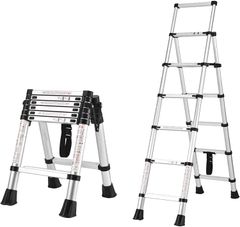 プロ用多機能アルミ伸縮はしご 3.7+3.7m 折りたたみ・スライド式で省スペース・軽量・高耐荷重 屋根・電気工事・家庭用・ロフト・オフィス対応(170CM)