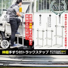 #2911 手すり付き 折りたたみ式 トラックステップ 耐荷重120kg 2段 アルミ製 トラックラダー トラック用荷台はしご 昇降ステップ 荷台ステップ ※一部地域離島別途配送料有