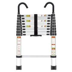 RIKADE 伸縮はしご 耐荷重150kg 軽量 持ち運びやすい 折り畳み 伸縮梯子 多機能アルミはしご 自動ロック スライド式 伸縮自在 梯子 室内室外両用 スライド式 フック付き (シルバー, 2.6)★m