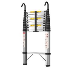 DayPlus 伸縮はしご ステンレス製 5m 折り畳み伸縮梯子 持ち運びやすい軽量 多機能 耐荷重150 kg 自動ロック 安全ロック スライド式 ステンレス鋼のはしご 梯子 室内室外両用 スライド式 フック付き (シルバー, 5.0m) …★m