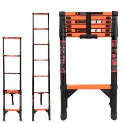 RIKADE 伸縮脚立はしご 踏み台 軽量伸縮自在 折りたたみ 持ち運び便利 室内屋外両用 アルミはしご ?自動・安全ロック付き 耐荷重150 kg (ブラック+オレンジ, 1.7+2.0m)so