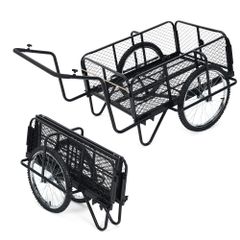 ガービー(Garvee)鉄製リヤカー 折りたたみ式 ロッド付き 耐荷重150 kg 収納便利 空気圧タイヤ 収穫台車 大型 運搬車 園芸 倉庫 家庭用 アウトドア
