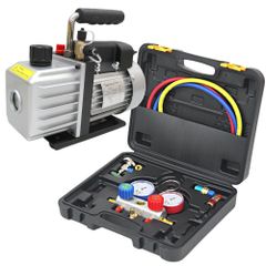 WEIMALL エアコン マニホールドゲージセット R134a R32 R410a R404a チャージホース マニホールドゲージ & 真空ポンプ(排気速度 60L/S) 逆流防止機能付き セット 冷媒 クーラー エアコン修理 エアコン修理工具