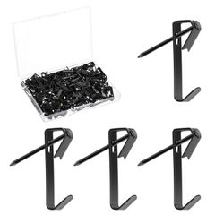 ピンフック 100個セット(100フック+100針先)金属 錆びない 耐荷重約30ポンド(13.61kg) 画鋲 フック 黒 石膏ボード AUGSHYO 写真 壁掛け用フック 油絵フック ホーム オフィス 学校 収納ケース付き