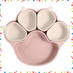 【在庫セール】猫の爪 ギフト対応 出産祝い かわいいカラフルデザイン 滑り止め&分離式デザイン 食品級シリコン製 離乳食対応 ひっくり返らない (ピンク) 吸盤付き 5グリッド ベビー食器セット