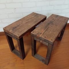 【ハンドメイド】古材風天板のスツール・ベンチ・飾り棚(横幅45cm×2個セット)