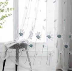 新品 レースカーテン 刺繍 100x220 2枚セット 青色の花柄 雰囲気