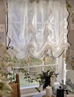新品 バルーン カフェ カーテン レース アイボリー ベージュ タッセル