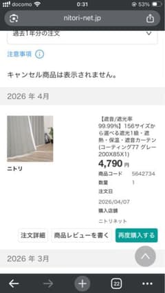ニトリ 遮光1級 遮熱 保温 遮音カーテン グレーコーティング77 200×85