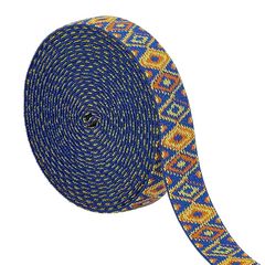 【新品】 BENECREAT 5ヤード/4.6m 弾性ゴムバンド ゴムベルト 印象的な柄 25mm幅 刺繍 伸縮性バンド ボヘミアンスタイル ボーホー ジャカード リボン 服 ベルト交換 手芸裁縫 裁縫材料 手作り素材 ブルー 1