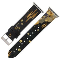 【新品】 compatible with Apple Watch アップルウォッチ用 バンド ベルト カーフ 牛革 日本伝統 文化 キモノ KIMONO カシス 42mm(series11/10)/41mm/40mm/38mm Series11/10/9/ 0
