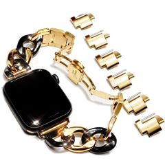 Royce&Roland Apple watch チェーンバンド バタフライバックル おしゃれ アップルウォッチ 時計 バンド (ステンレス/シルバー) レディース メンズ ギフト プレゼント (44mm 45mm 46mm 49mm, ゴールド/ブラック 0