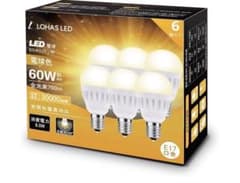 ロハス LED電球 ミニクリプトン形 E17口金 60W相当PSE認証 6個入り