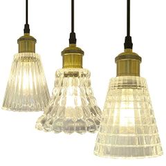 ペンダントライト ガラス 北欧 レトロ アンティーク おしゃれ 口金E26 ダクトレール用 吊り下げライト ストライプ ガラスシェード ダイニング リビング 居間 食卓 玄関 廊下 カフェー (ダクトレール用・昼光色LED電球付, Aタイプ)p