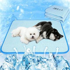 Paerduo ペット ひんやりマット 犬 猫用洗えるペットシーツ おしっこマット ペット用 トイレ下敷きマット 夏用 ペット用シーツ 接触冷感 防水/消臭/速乾 洗濯機で丸洗い 繰り返し利用可能 (ブルー, L(100x70cm)x2枚)