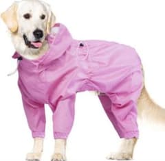 犬服 犬用レインコート 着脱式帽子付き 雨対策 ファスナー付き ピンク L