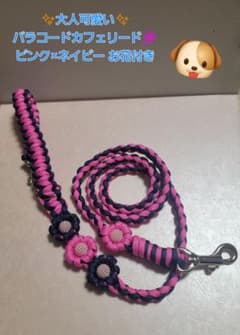 大人可愛いパラコードカフェリード ピンク×ネイビー お花付き 94