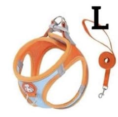 小型犬 中型犬 ハーネスリードセット M オレンジ 反射光 6-10kg 胴輪