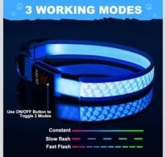 Lサイズ♡中型犬大型犬用 充電式LED犬用光る首輪USBケーブル ブルーメッシュ