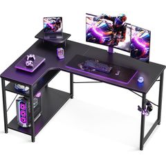 【数量限定】組立簡単 在宅勤務 オフィスデスク 書斎 pcデスク 収納 デスク ラック付き カーボンブラック desk 机 L字デスク 幅130 左棚 ゲーミングデスク L字 パソコンデスク ODK